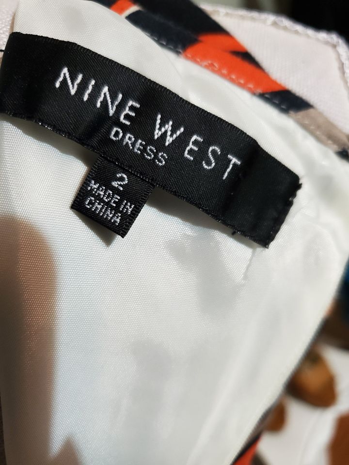 Wide slimming waistband, pleated, peek a boo neckline, long back zipper, fully lined. NWOT