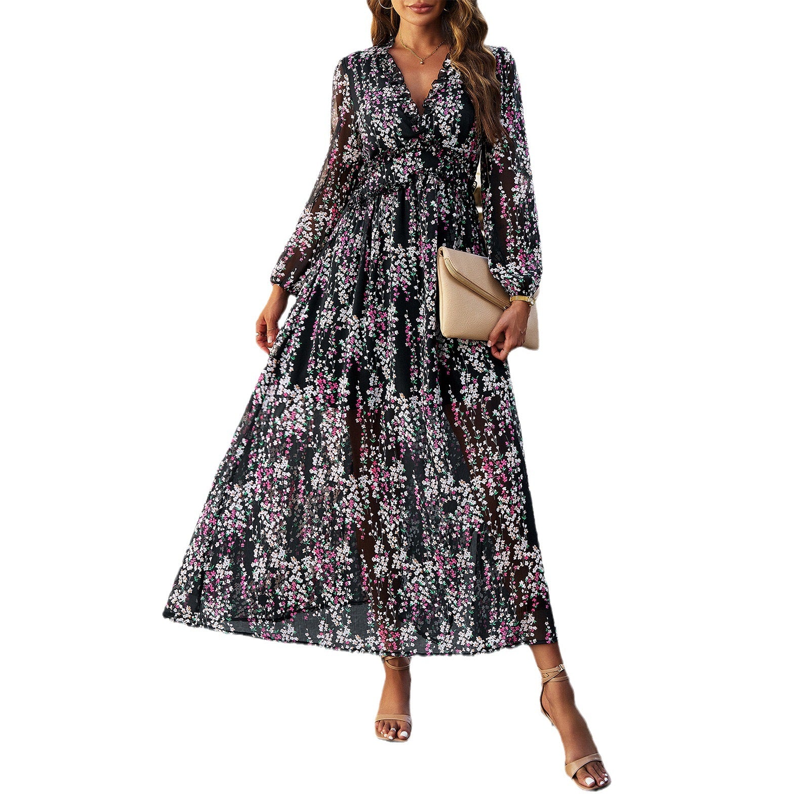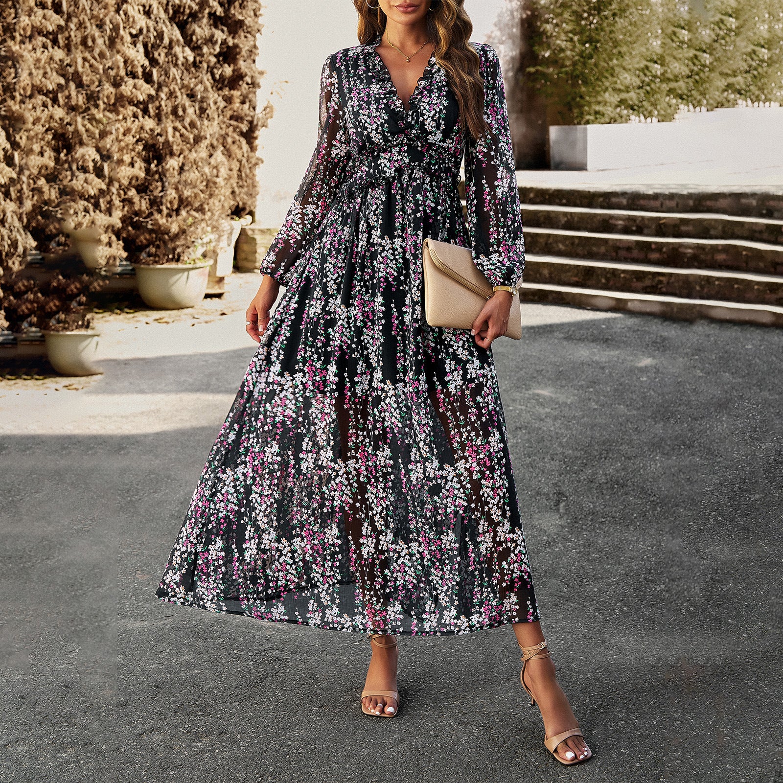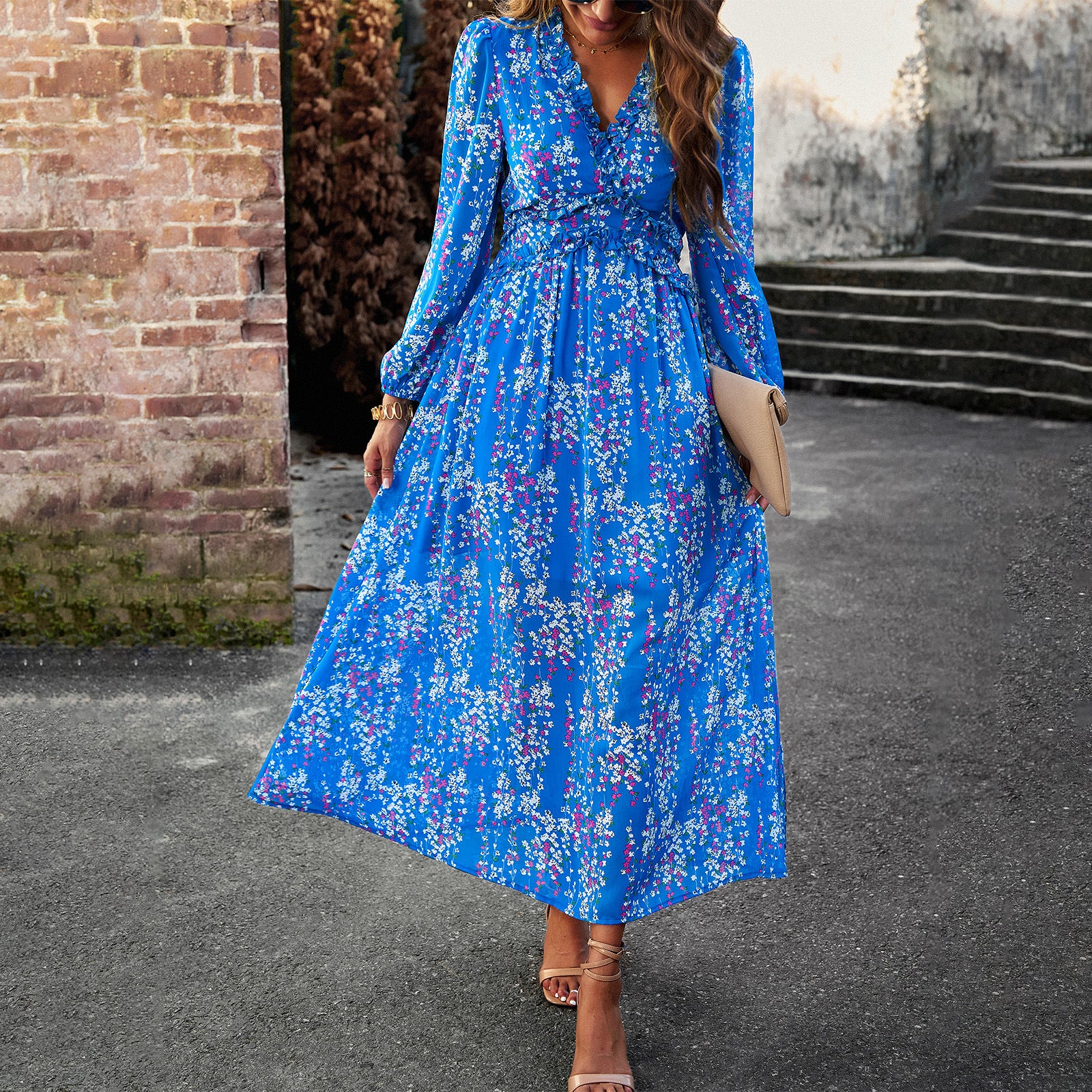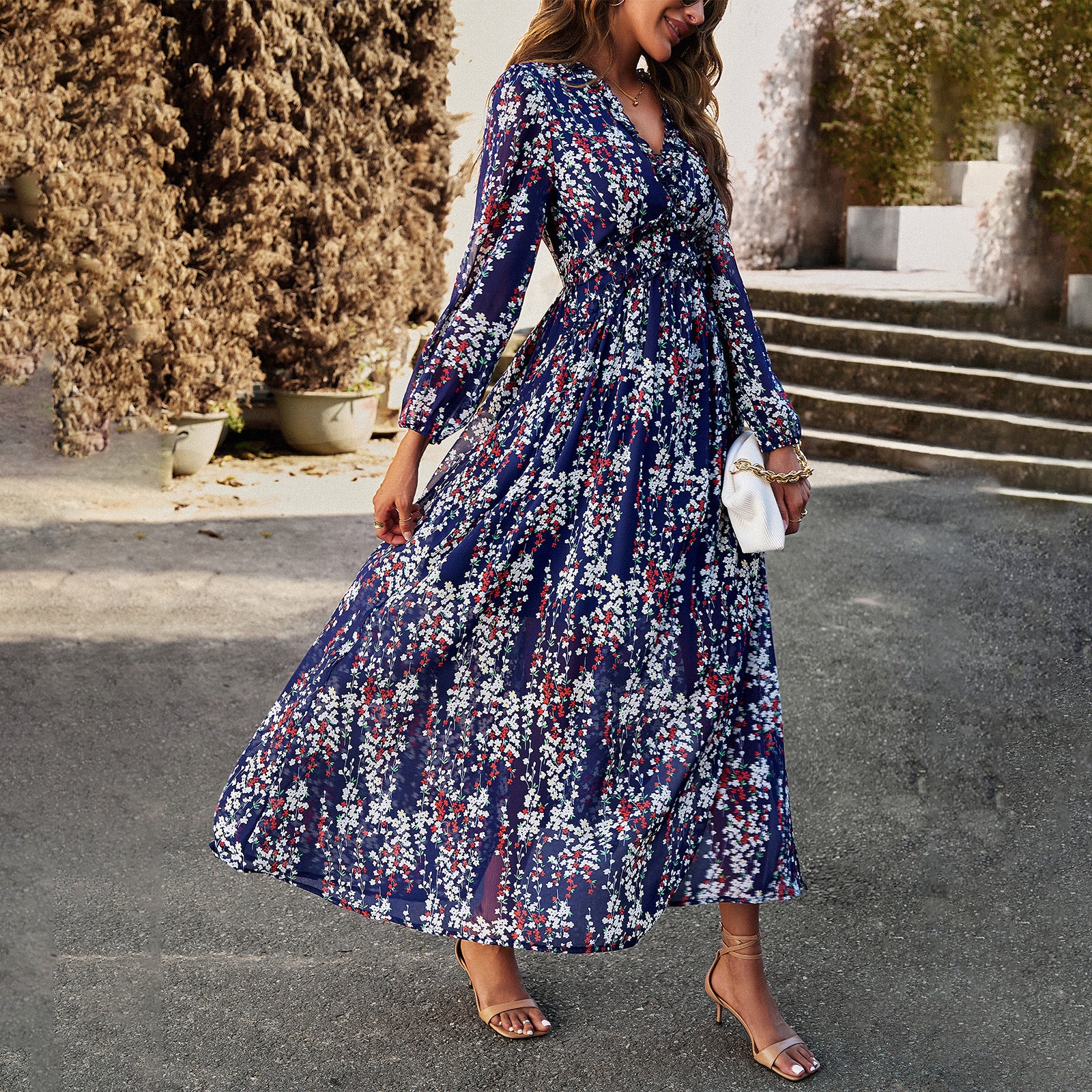 Women's Fashion Casual V-neck Long Sleeve Chiffon Dress