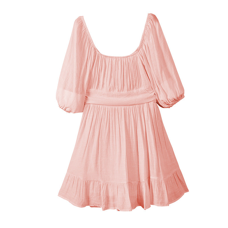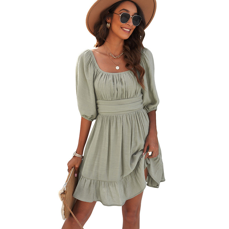 Women's Off-neck Dress Waist Slimming Solid Color Knee-length Skirt