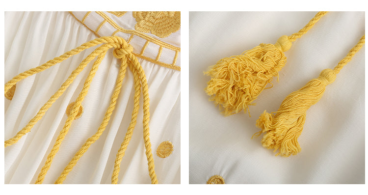 Women's Off-shoulder Flower Embroidered Vintage Dress