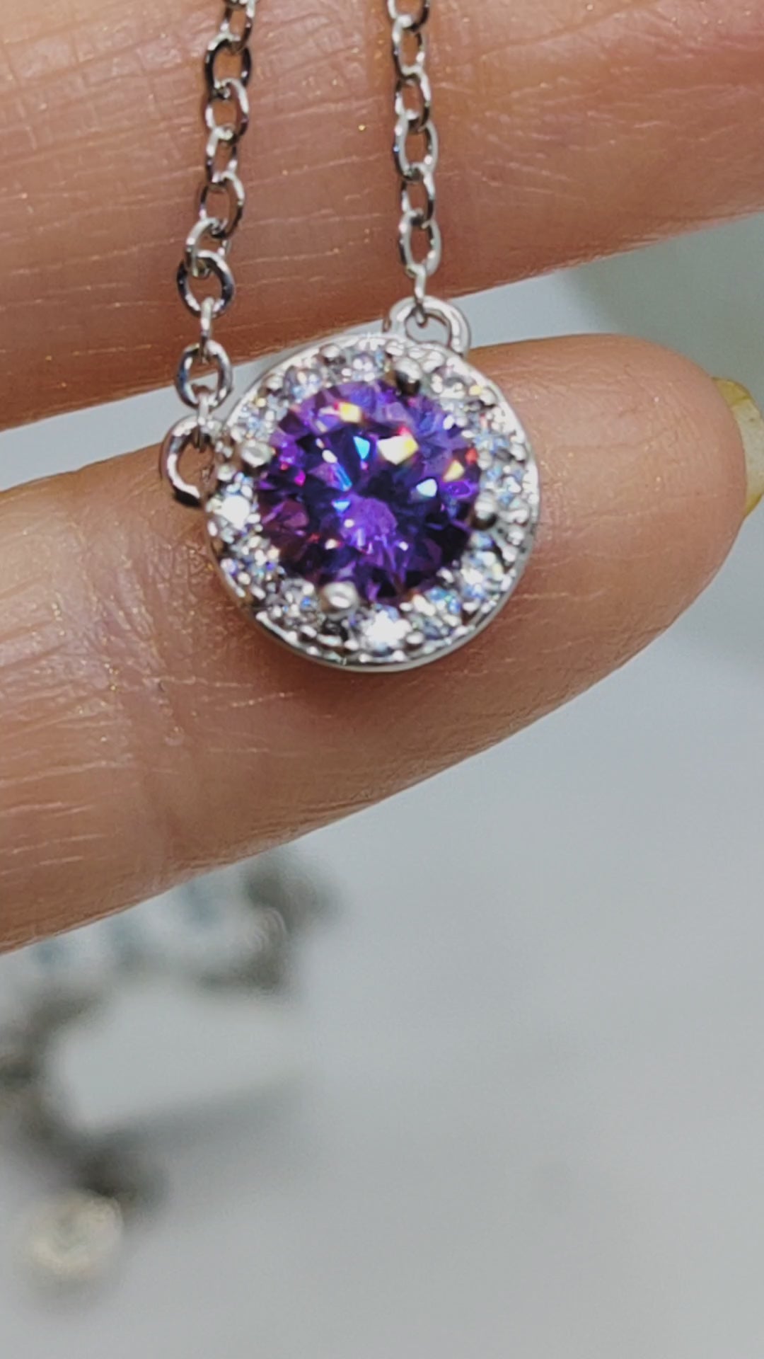 The necklace, which is both beautiful and intriguing, with the flickering lab created diamonds displayed around it, the necklace's design allows the center gem to exhibit a pool of color with outstanding vibrance.