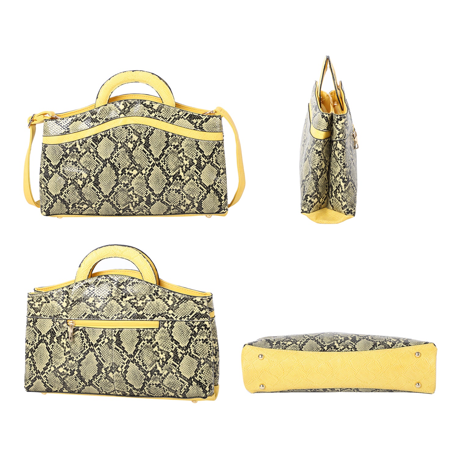 There isn't anything like this simple and structured tote bag to pull off an elegant look. Snakeskin pattern leverages a contemporary touch. The bag is designed to offer the maximum amount of interior space, making it ideal for any occasion. To top of it, it is versatile to carry by semicircle handles or detachable shoulder strap.