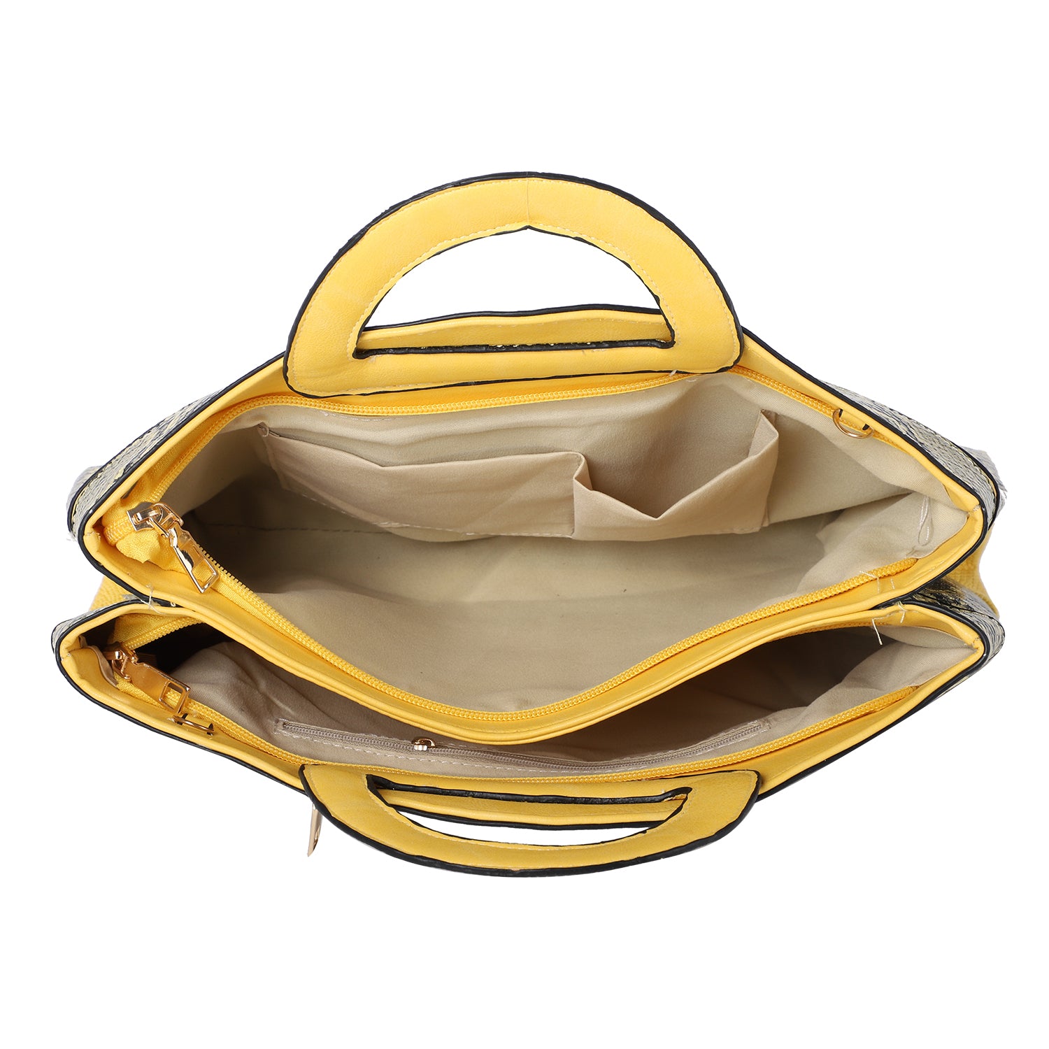 The tote bag features two main compartments and three inner pockets where you can keep your stuff organized